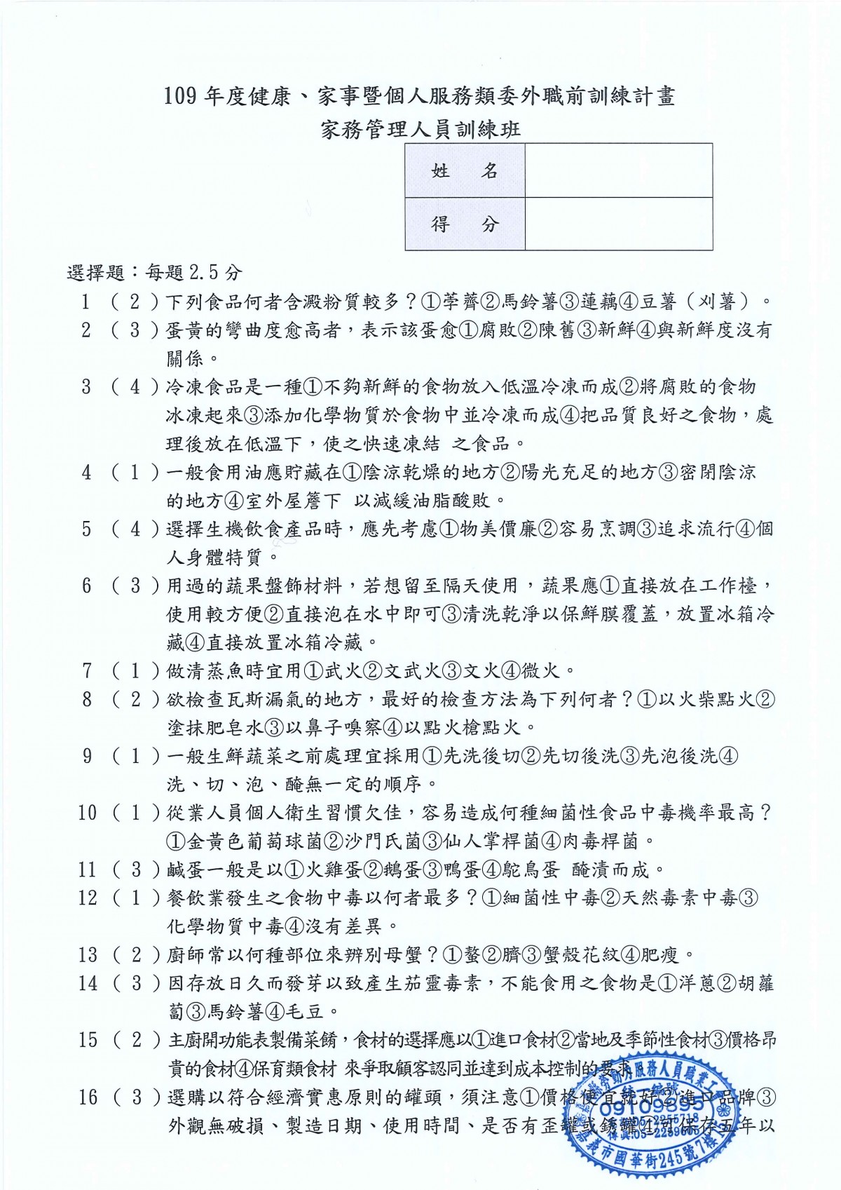 行銷企劃管理暨門市證照服務培訓班錄取名單公告