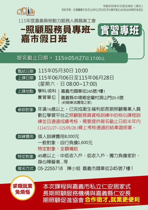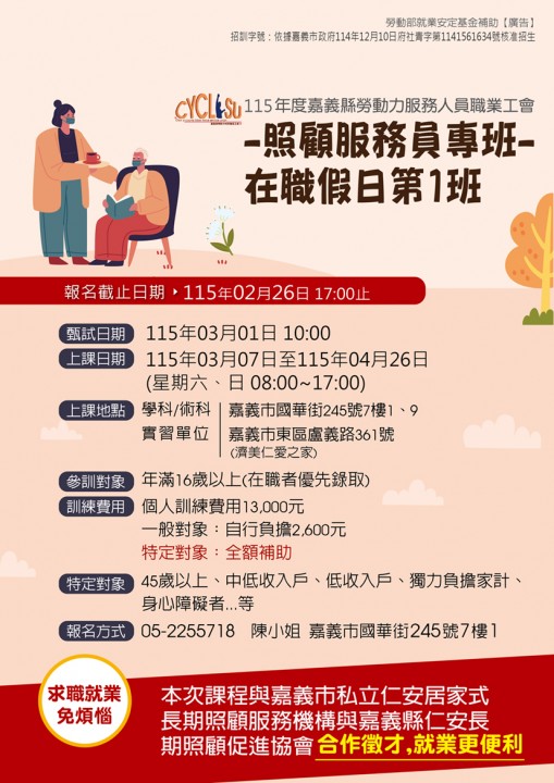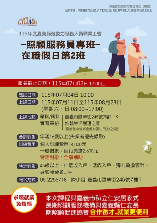 115年照顧服務員課程招生中