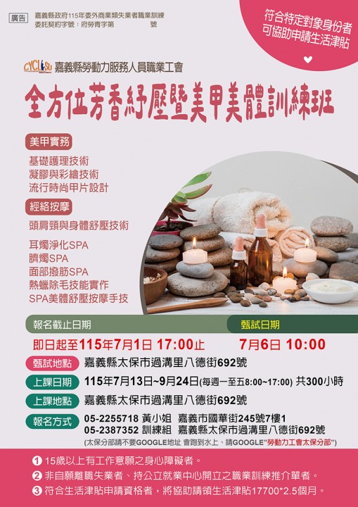 全方位芳香紓壓暨美甲美體訓練班招生中